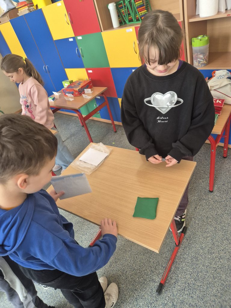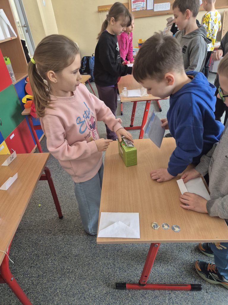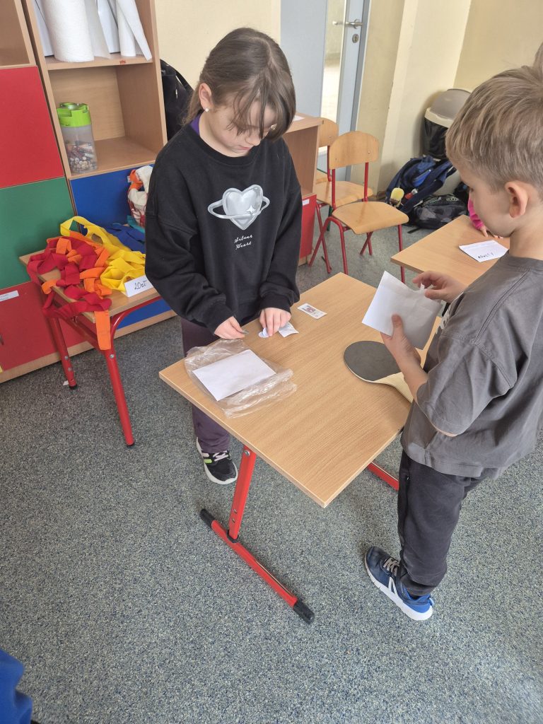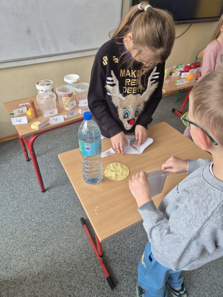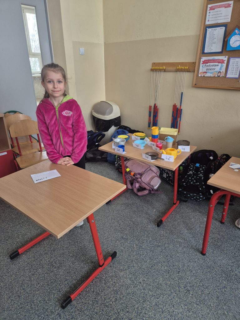 Podczas zajęć z zakresu edukacji matematycznej uczniowie klasy I uczestniczyli w zajęciach pt. „Zabawa w sklep”. Celem lekcji było utrwalenie umiejętności liczenia w zakresie poznanych liczb, doskonalenie dodawania i odejmowania w praktyce oraz kształtowanie właściwych zachowań podczas zakupów. Sala lekcyjna zamieniła się w stoiska sklepowe, a dzieci wcielały się w role sprzedawców i klientów. Uczniowie z dużym zaangażowaniem wykonywali zadania, współpracowali ze sobą i doskonalili umiejętności matematyczne poprzez zabawę.